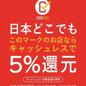 キャッシュレス決済5%還元対象店です。